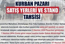 Malkara Belediye: Kurban bayramı nedeniyle Kurban Pazarı Hacıevhat Mahallesi Ahmetpaşa Köy Yolu Caddesi Erenler Futbol Sahası alanında kurulacaktır